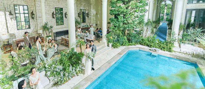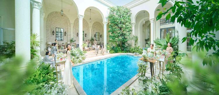 中央にプールを配したガーデンは、ラグジュアリーなおもてなしスペース。外からの視線も遮られ、静けさに満ちている。都会にいながらリゾート気分を味わえる別世界に、大切なゲストを招待しよう。ここで過ごす非日常の時間は、ゲストの記憶にも深く、美しく刻まれる一日に。