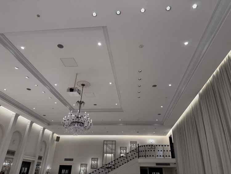 私達好みの白を基調とした披露宴会場で、見学の際にセッティングしてあった装花も映えてて素敵でした。ガーデンや階段などさまざまな場所からの入場ができるのもいいなと思いました。
