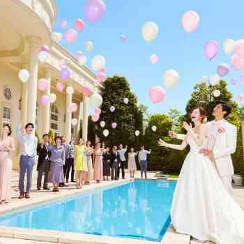 - テーマに合わせた色のバルーンをゲストと一緒にリリースするセレモニーは、結婚式ならではの人気の演出