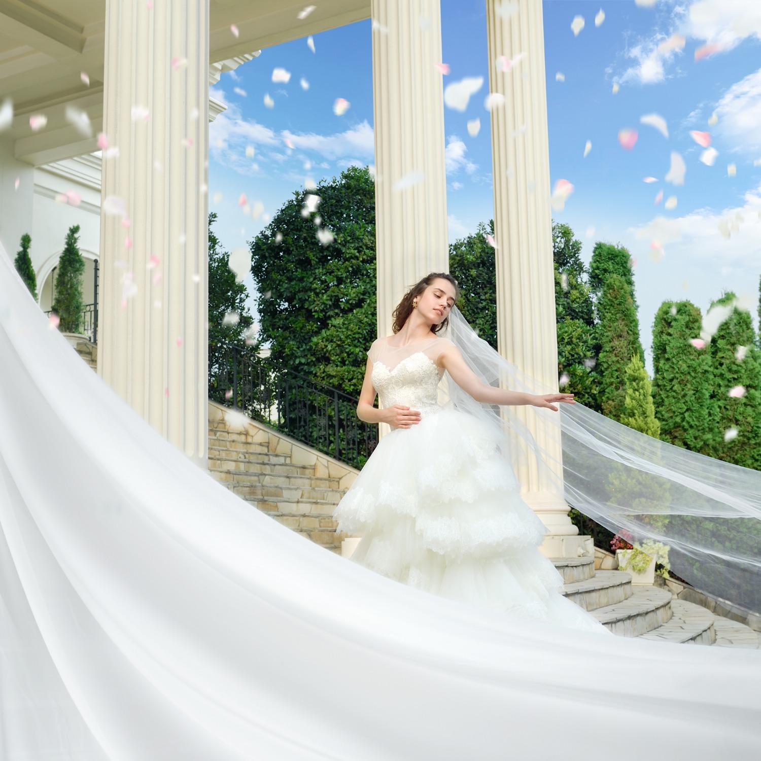 アイアンゲートを抜けた先に佇むプール付きの広大なガーデンと白亜の大豪邸が印象的なホワイトハウスは、かわいいが詰まった幼いころからの花嫁の憧れが叶う特別な空間。
