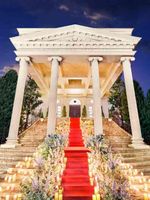 チャペル前の大階段は、花嫁憧れのウエディングステージ。 壮麗な造りの白亜の教会、ロングトレーンのドレスが映えるバージンロードに、多くの花嫁から絶賛の声が! ナイトウェディングならキャンドルを飾って幻想的な雰囲気に。 シーンに合わせてコーディネートも自由自在に。