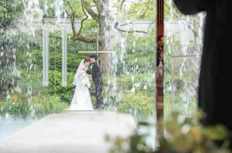 自分たちの気に入った会場で、ゲストにサプライズ感を出したとっておきの演出を!チャペルの先にお二人は退場し、皆様に見届けていただきながらのクロージングキスを!それだけでも歓声が上がりましたが、、、滝が流れるというサプライズも一緒に忘れられないシーンへと早変わり。お二人にとってもゲストにとっても素敵なシーンでした。