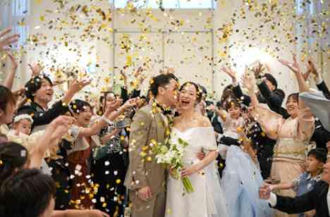 ゲストの皆様から温かいおめでとうの言葉と共にコンフェッティシャワーを行いました。挙式の感動の瞬間はなかなか大きな声でゲストの方々はおめでとうと言えない・・・ならそれを伝えることができるシーンを作ればよい!ということでロビーにて実施しました。ゲストの方は楽しそうな笑顔と素敵な写真で記憶にも記録にも残る瞬間となりました。