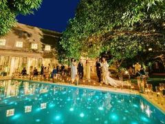 【ホワイトハウス】プールと緑と空の光に輝く白亜の大豪邸はお二人だけの貸切に!