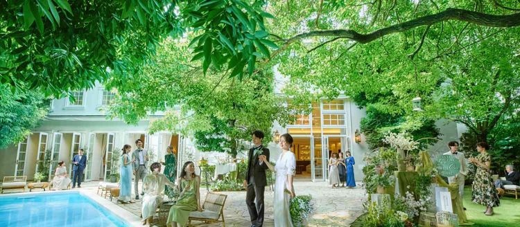 祭壇の奥に滝が流れる神秘的なチャペル、大空とそよ風を感じる開放的なプールガーデン、テイスト異なる3つの貸切邸宅…さいたま新都心駅からほど近い場所であることを忘れてしまうほどの非日常空間が魅力。大切なゲストの優しさに包まれて、幸せを紡ぐ場所に。