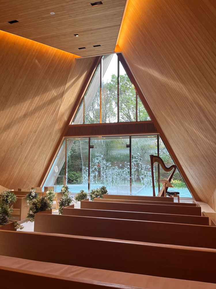 自然な森の中にある滝の流れるチャペルで、檜の香りまでしたので、本当に素敵でした。 こんなところで挙げられたら素敵だなと思いました。