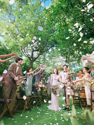 永遠の愛の誓いは広大なガーデンで 二人だけでなくゲストの記憶にも刻まれ、ふとした瞬間に感動のシーンを思い出させてくれる。太陽にも祝福される開放的で本格的なガーデン挙式が可能。プールの水にガーデンのグリーン。思わず幸せの笑みがこぼれる挙式が実現できる。