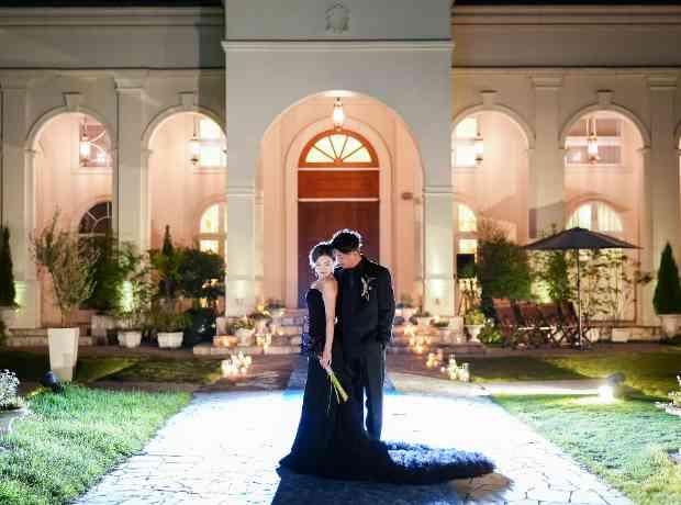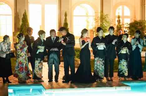 黒のドレスが引き立つクールで華やかな着こなしがとってもオシャレな一着。「あなた以外には染まりません」という意味が込められており、結婚に向けたおふたりの決意を感じられるご衣装。 個性的で自分らしいウエディングを表現する一つの方法で近年注目を集めております。しかしながらまだ見たことが無いゲストも多く新鮮な印象を与える効果もあり、当日ゲストの皆様からとても好評でした。