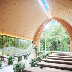 【選べる2つのチャペル】<陽光差し込む光と森の大聖堂><水音広がる光と水の純白チャペル>自然光のスポットライト降り注ぐ、ぬくもりのチャペルで、本番さながらの挙式体験が好評♪初めてのご見学で挙式料特典!