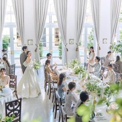 【憧れの結婚式がイメージ出来る♪】ゲストも羨む憧れの”大階段”の入場体験や先輩カップルの映像上映会などの演出をご用意!広大なプール付ガーデンも隣接しているから自然光が差し込む開放的空間。