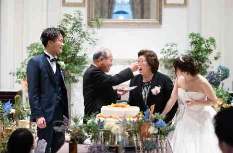 アットホームな時間を創り上げるためにとっておきのサプライズ!新郎新婦様が一番こだわりましたウェディングケーキで、新郎祖父母にお手本バイトを依頼!ずっと結婚式を楽しみにしてくれたからこそサプライズ登場でびっくりしながらも笑顔で楽しんでいただけました。お二人もやってよかったとお喜びになっていらっしゃいました。