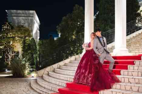 夜の写真はイルミネーションも輝き、より非日常空間を残すことが出来ます。 当日もたくさんのお写真は撮れますが、 前撮りで当日着ないドレスを着用し撮影をすることが出来ます! ゆっくり時間をかけて撮る写真は、より素敵なお写真になること間違いなしです! 憧れの大階段で心ときめく写真をたくさん撮影できます。