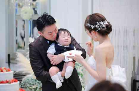 ケーキセレモニーにて、お子様にご参加いただきました! お子様にとってはじめて本格的に食べるイチゴ。 ご自宅でちょっとずつ練習していただき・・・本番、ぱくっと食べたときにはすっぱそうな表情! そんな貴重な瞬間も専属カメラマンがしっかりお写真に残します♪ おふたりにとってきっとわすれられない瞬間。
