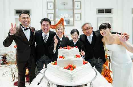 仲がいい親御様!可愛らしいシーンも見たくておふたりと考えました。 お手本バイトは新郎新婦の前に先輩夫婦が見本となり先にファーストバイトを行う演出です。 ご結婚式をおすそ分けする結婚式だからこそ、定番演出も親御様に参加して頂きました。 食べさせあいっこする瞬間と口元を拭きあう親御様がお手本されているシーンは、 ゲストからの掛け声や歓声もありあったかいシーンとなりました。