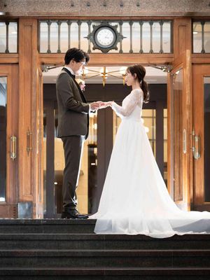 数々の昭和史の舞台として名を残してきた登録有形文化財“九段会館” 昭和9年に誕生したこの格別な空間は、昭和・平成・令和へと後世に継承されます。そのエントランスに佇む、歴史を刻んできた時計。時計前挙式では、この時計の前で、これからおふたりが家族として歴史を紡いでいく誓いを結んでいただきます。
