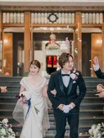数々の昭和史の歴史に名を刻み、登録有形文化財として多くの貴人が訪れた九段会館。そんな九段会館のエントランスにある大階段での挙式は、本物の品格が漂う格別な時間に。