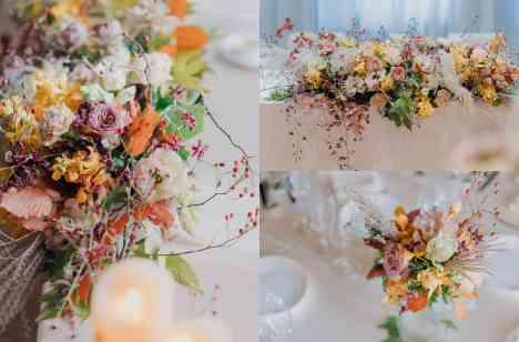 披露宴会場は、深まる秋をイメージしたカジュアルなコーディネートに。当日お召しになる衣裳にもマッチするよう、トータルコーディネートを意識されました。ゲストによる乾杯のご発声で、華やかにスタートした祝いの宴。新郎様新婦様がこだわってご選択されたお料理を味わいながら、おふたりとゲスト、そしてゲスト同士でも会話に花を咲かせているご様子でした。