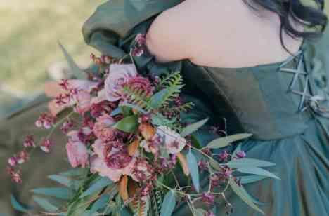 お色直し入場では、ディープグリーンのカラードレスにお召し替えされた新婦様。エレガントさをただよわせるカラードレスと、スモーキーカラーのブーケが互いに引き立て合い、可憐な新婦様のお姿を一層美しく魅せました。入場後は、ゲストテーブルを周るフォトラウンドのお時間に。大切なゲストに心からの感謝を伝え、ゲストもまたおふたりにあたたかな祝福の気持ちを贈られていました。