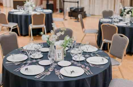披露宴の会場装飾にも、こだわりが込められていました。 新婦様がお好きな「白い花」を基調にし、それを引き立てるようにブラックのテーブルクロスを選定。さらに、メイン席やゲストテーブルにもキャンドルを配置し、温かみのある落ち着いた雰囲気を演出しました。上品でシックな空間の中、ゲストの皆様と心温まる時間を過ごされました。