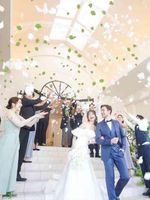 大聖堂での感動的な挙式の後はフラワーシャワーのセレモニー。全天候型のアトリウムだから天候に左右されることがないのでゲストも安心。天保山の大観覧車が目の前に望める絶好のロケーションでゲストの笑顔とフラワーシャワーの祝福に包まれて最高の瞬間を。