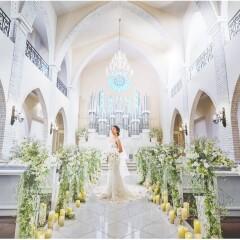 【天高10M、自然光あふれる感動チャペル体験】純白の大理石のバージンロードと美しいブルーのステンドグラスが輝く、高さ10Mの天井に響き渡るパイプオルガンの音色、感動に満ちた入場シーンを体験してみて