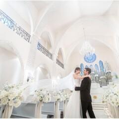 【天高10M、自然光あふれる感動チャペル体験】純白の大理石のバージンロードと美しいブルーのステンドグラスが輝く、高さ10Mの天井に響き渡るパイプオルガンの音色、感動に満ちた入場シーンを体験してみて