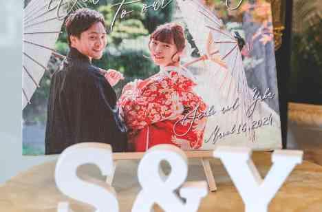 ①ウェルカムパーティーとテーブルマッピングでこの式場ならではの演出を行いました。 ②ウェルカムスペースは好きなキャラクターをテーマに飾り付けをし、新郎新婦姿のぬいぐるみを手作りしました。 ③披露宴の曲は、自分たちの使いたい曲を入れ、全体的に統一感を出しました。 ④来てくれたゲストの方とたくさん関われるように、タイムスケジュールを工夫しました。