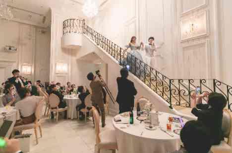 館内BGMにもこだわりました。ゲスト参加型のイベントやウェルカムパーティー時にテーブルマッピングを行い、挙式や披露宴以外の時間も楽しんでもらえる演出を用意しました。 どのような演出が良いか悩むこともありましたが、ゲストを楽しませたいという気持ちと、同じくらいの熱量で支えてくれるスタッフの方々の想いがありました。 ゲストからお褒めのお言葉をいただき、結婚式を挙げてよかったと心の底から思いました。
