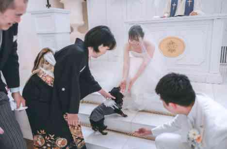 結婚式を挙げると決めた段階で絶対にリングドッグをしたいと思っていたので、実現できてとても嬉しかったです。 慣れない環境で緊張しながらも一生懸命歩いて指輪を運んでくれる愛犬の姿に感動しました! 教会式で静寂な雰囲気でしたが、リングドッグの際は雰囲気も和み、私たちも緊張が少し解け、ゲストの笑顔も見れたのでやってよかったです。