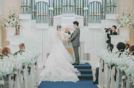 6月に挙式ということもあり、梅雨なので天気が心配でした。 当日は大雨でしたが、大聖堂のステンドグラスからは自然光がたくさん入るので、天気も気にならないぐらい綺麗に写真に残すことができました。 オプションで青色のバージンロードにし、ウエディングドレスが一層映えたので、変更してよかったなと感じています。