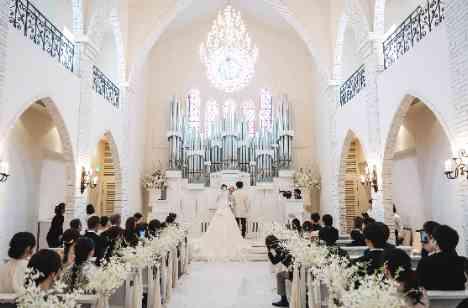 挙式では、バージンロードを歩いている時や、誓いの場面での姿が印象的になるように、後ろ姿が綺麗に映えるようトレーンの長いウエディングドレスを選びました。 サテン生地のキレイめのドレスを選んだので、ドレスとバランスよくなるよう、刺繍の綺麗なベールや、髪型も上品な感じにしていただきました。 開放感が欲しかったので、天井が高くステンドグラスの綺麗な会場を選んだのもポイントです。