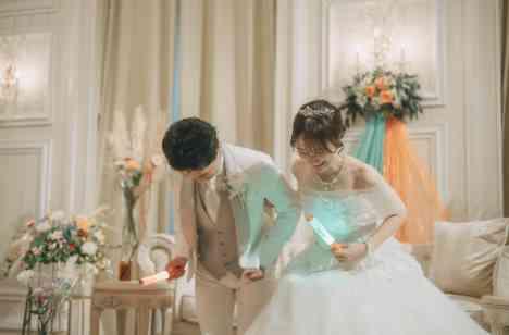 私の好きな男性アイドルのコンサートをテーマに、小物や演出をこだわりたくさん準備しました。 自分たちで作れそうなものを考えるのが楽しかったです。 ウエルカムグッズに、メンバー分のぬいぐるみを並べたり、ツアーTシャツ、うちわや写真などを飾りました。 披露宴ではペンライトや銀テープなどを用意し、まるでコンサート会場のような雰囲気を叶えることができました。