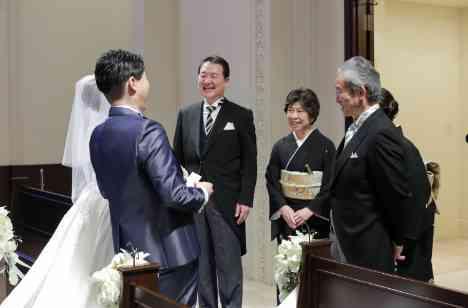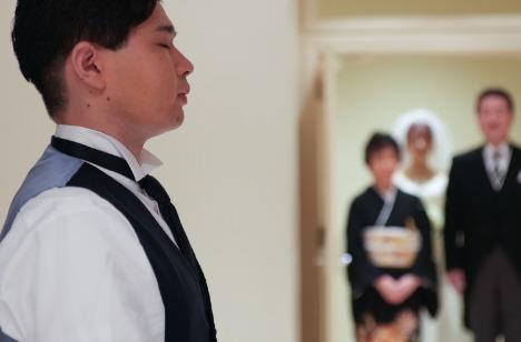 挙式前にチャペルでファーストミートとファミリーミートを行うことに。ウェディングドレスとタキシードを身にまといドキドキ胸を膨らませながらチャペルへ向かいます。ドレス姿のご新婦様を見て、緊張顔の新郎は笑顔に!ファーストミートの後は、チャペルに家族を招きファミリーミートを行いました。大好きな両親と顔を合わせ感謝の気持ちを伝えます。照れながらも嬉しそうな両親から、温かい言葉と祝福の言葉が贈られました。