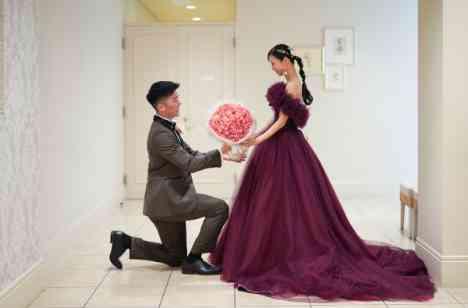 打ち合わせは、おふたりの決めごとがスムーズに進むよう、担当プロデューサーやスタッフがお子様と一緒に遊んだりしながら、終始和やかなムードだったのが印象的です。 お忙しい中でも、プロフィールムービーを自作されたり、可愛いブーケをネットで探してご自身で用意するなど、しっかりと工夫をされています。ブーケは、ウェディングドレスとバーガンディー色のカラードレスのどちらにも合う、素敵なデザインでした。