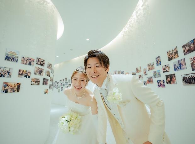 出会いは中学生の時、沢山笑って沢山喧嘩してどんな時周りの友人に支えてもらいながら今日の日を迎えたお二人。 大好きなゲスト様たちと過ごした今までの思い出と結婚式という特別な一日が素敵な想い出となりますように…そんな願いが込められた一日。 バージンロードは“花嫁様の人生”を表していることからチャペルまで続く回廊は生まれたときから結婚式当日までに出逢った大切な皆さまの写真でいっぱいに!