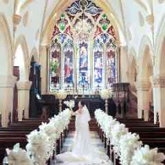 【ステンドグラス輝く本物の大聖堂での入場体験】200年以上の歴史を刻む中世ヨーロッパから輸入されたパイプオルガン等、数々のこだわりのアイテムは花嫁を美しく見せてくれる。入場体験では思わず涙するカップルも