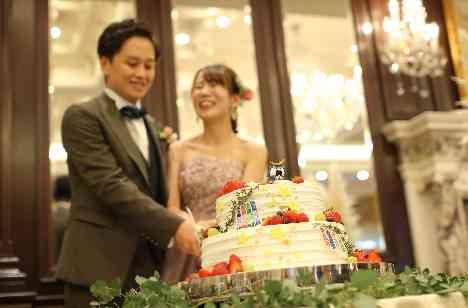 ふたりの地元のキャラクターを使ったウエディングケーキをキャメロットヒルズのパティシエに再現してもらいふたりらしさを演出しました。写真撮影もたくさんしてもらえる演出なので少しでもふたりらしさを演出したくて行いました。ゲストからも「おー」と歓声があがったのでとてもうれしかったです。ケーキはお料理のラストにゲストへふるまい、味も満足いただけて良かったです。
