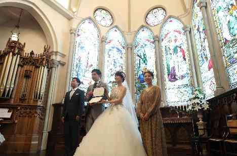 挙式のスタイルはキリスト教式ではなく、集まってくれた友人たちも参加できる人前式をチョイスしました。キャメロットヒルズのパイプオルガンやトランペットの演奏は取り入れて、アットホームな人前式になるようにプラン―さんとも打合せを進めました。立ち合い人はサプライズで大切な友人にサインをもらって一層絆を感じる事ができました。