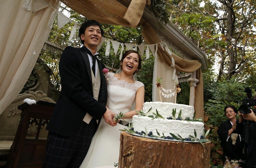 ナチュラルでかわいらしいウエディングケーキをチョイスしました。
