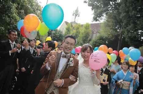 感動的な挙式の後、「ゲストのみんなにも楽しんでほしい」というお二人は、バルーンリリースを行いました。 このバルーンリリースには、天国のお父さんへのメッセージを託してリリースを。お天気が当日雨でしたが、挙式中に止んで、バルーンリリースができたはとても感動的でした。