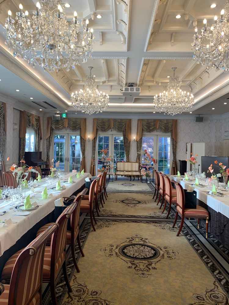 アンティーク感のある披露宴会場はとても素敵でした。あまり見ない長テーブルもイギリスの豪華な食事会のようで、こういうのもいいなぁと思いました。