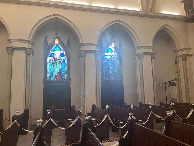 会場に着いた時からワクワクな 雰囲気がありました。 写真で見た通り、教会感が強い イメージ。 ディズニーランドの美女と野獣の世界観があるイメージでした。