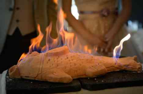 新郎新婦様はドレスにイメージチェンジされ、おふたりもゲストも気兼ねなく盛り上がれる自由度で開放的な雰囲気に。 御食事でもゲストを盛り上げたいおふたりは、お食事を使った人気演出、鯛の塩釜開きで会場を更に盛り上げました。 珍しい和の演出に海外のゲストも大盛り上がり! パーティーに華を添える演出になりました。