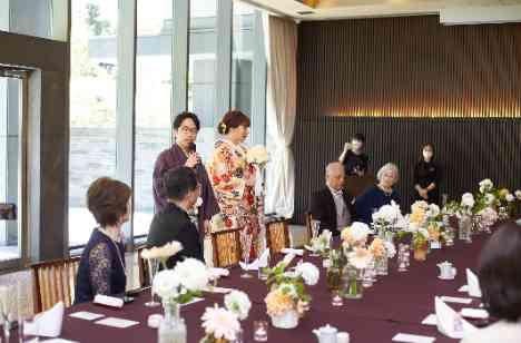 赤坂氷川神社で挙式を過ごした後、披露宴会場は響風庭赤坂にてアットホームな披露宴を。 挙式は厳かに過ごせた分、披露宴は大切なゲストの皆様とアットホームな空気にて過ごす一日を。 美味しいお食事と、お酒。 また披露宴会場から広がる景色は四季を感じ、窓から差し込む自然光で会場全体が明るい雰囲気に包まれ、良き想い出となった。