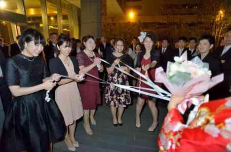 披露宴の途中ではテラスに出て、ブーケプルズの演出を取り入れました。 幻想的な外の庭園も貸切なので気が散ることもなく、風情ある風景を楽しみながら過ごすことができ、「私たちだけの時間」を贅沢に愉しみました。