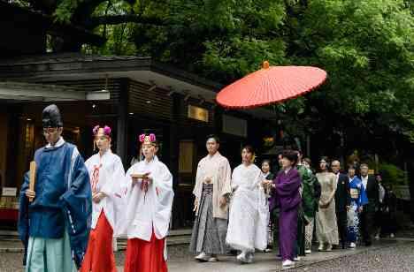 夫婦円満のご利益もある乃木神社で、厳かに神前式を叶えました。 友人も全員に参加してもらい、厳かさの中にも、アットホームな雰囲気で挙式ができました。 乃木神社は自然も多く、半屋外の本殿も開放的で写真映えもばっちりで素敵な時間が過ごせました。 挙式後には、人力車で披露宴会場まで移動。想い出に残る時間となりました。