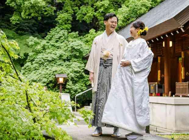 夫婦円満のご利益もある乃木神社で、厳かに神前式を叶えました。 友人も全員に参加してもらい、厳かさの中にも、アットホームな雰囲気で挙式ができました。 乃木神社は自然も多く、半屋外の本殿も開放的で写真映えもばっちりで素敵な時間が過ごせました。 挙式後には、人力車で披露宴会場まで移動。想い出に残る時間となりました。