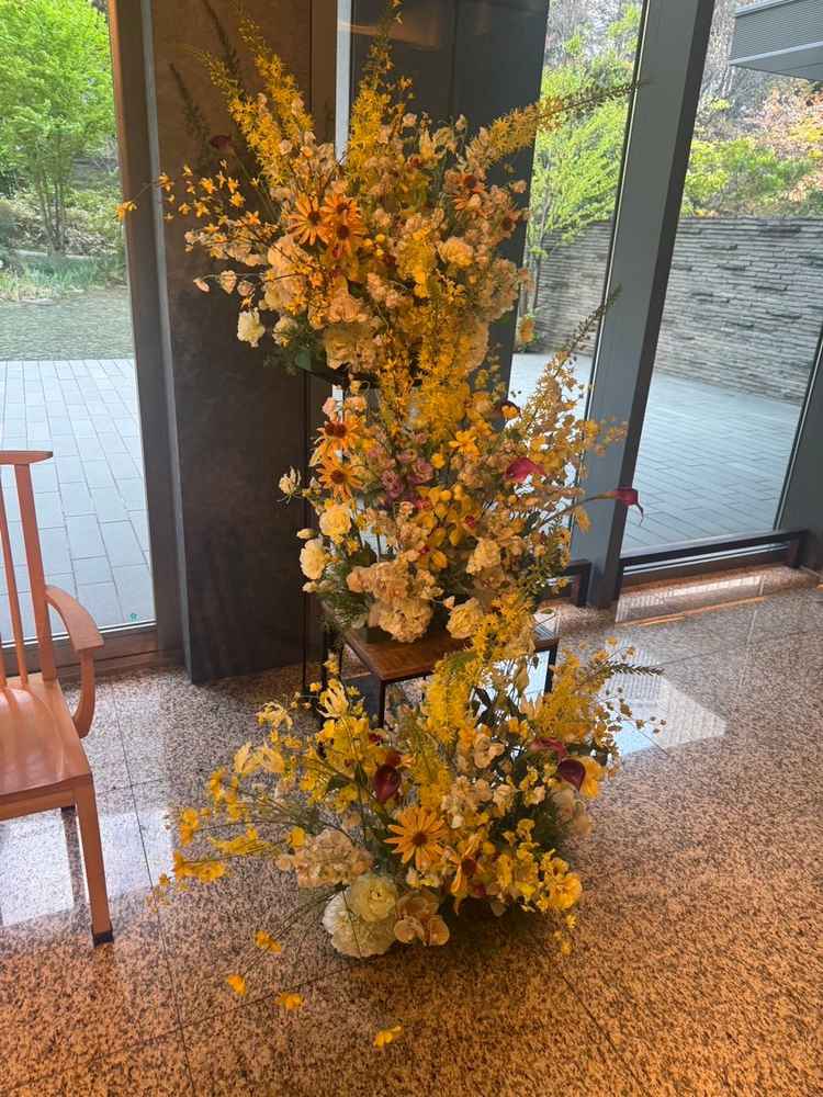 披露宴会場がガラス張りになっていて、外は庭園のため景色がとても良いです。インテリアもシンプルでコーディネートしやすそうだと感じました。