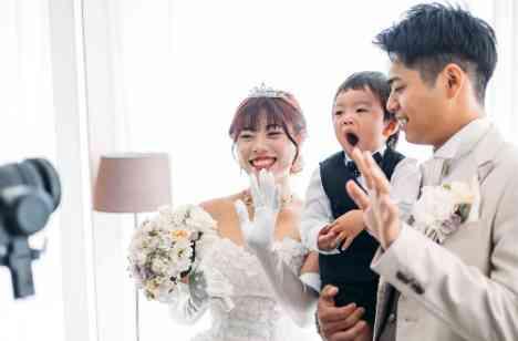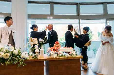 子育てをする中で、改めて親のありがたみを感じたとおっしゃられていたおふたり。ケーキバイトでは、両家ご両親の≪お手本バイト≫→おふたりの≪ファーストバイト≫→家族で≪お子さまバイト≫の流れで行い、おふたりの変化を感じてもらえるような構成にしました。 パーティ演出では、新郎新婦さまの幼い頃の写真当てゲームを行いました。新郎様の幼い頃の写真がお子さまにそっくりで、ゲストの方もとても盛り上がりました。