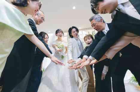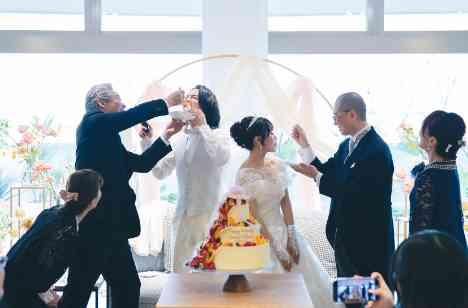 親御さまやご兄弟・ご親族さまが楽しめる瞬間や、グッとくるシーンをつくりました。 新婦の中座では、お姉さまにエスコートをしていただくことで親御さまに姉妹の姿を観ていただき、中座後にも全員で集まってお写真を撮る瞬間をおつくりさせていただきました。 新郎さまはお祖母さまと中座されることで、ご親族の皆様が盛り上がる演出となりました。